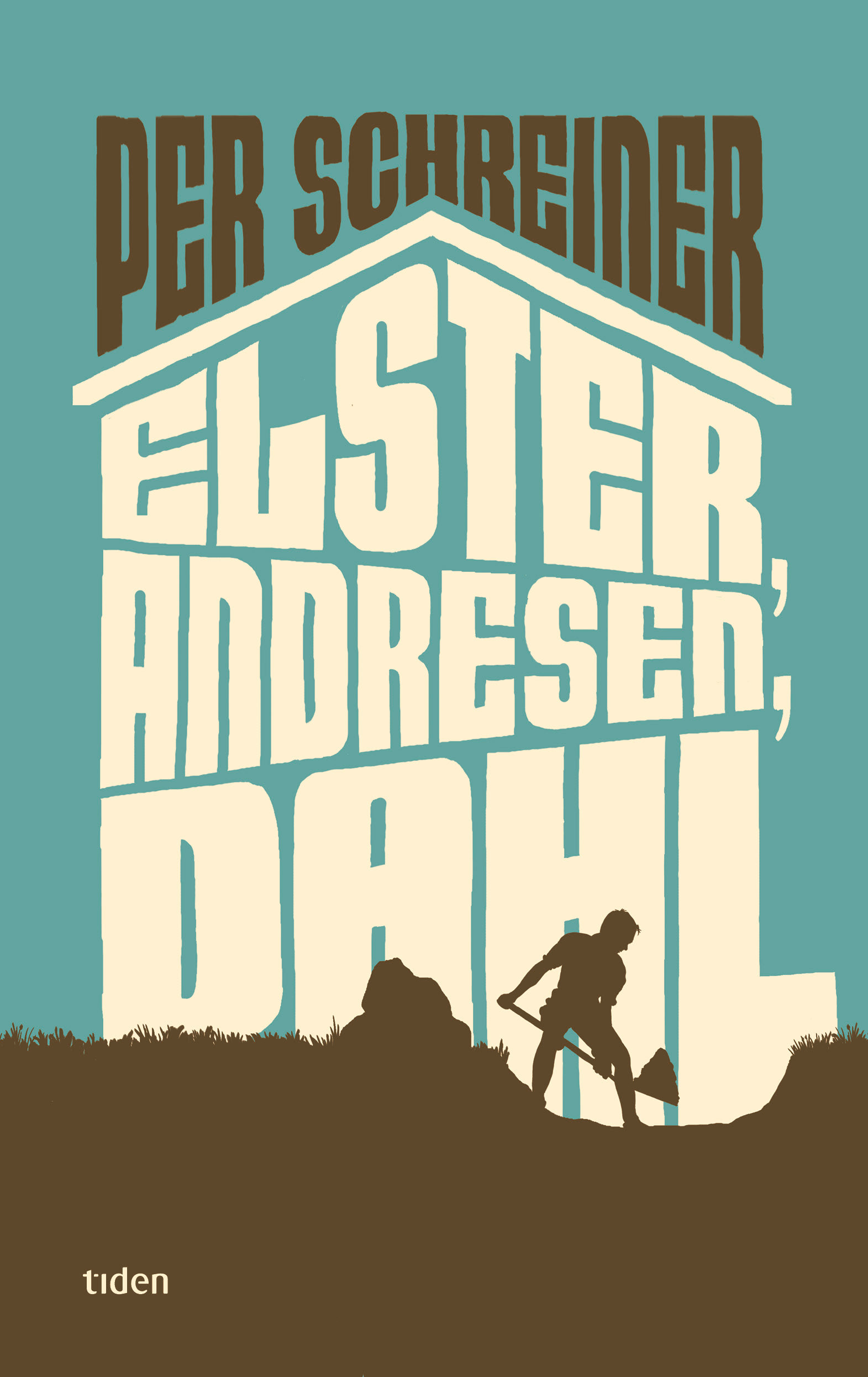Dust cover for Per Schreiner’s novel: Elster, Andresen, Dahl. Published by Tiden forlag, autumn 2017.